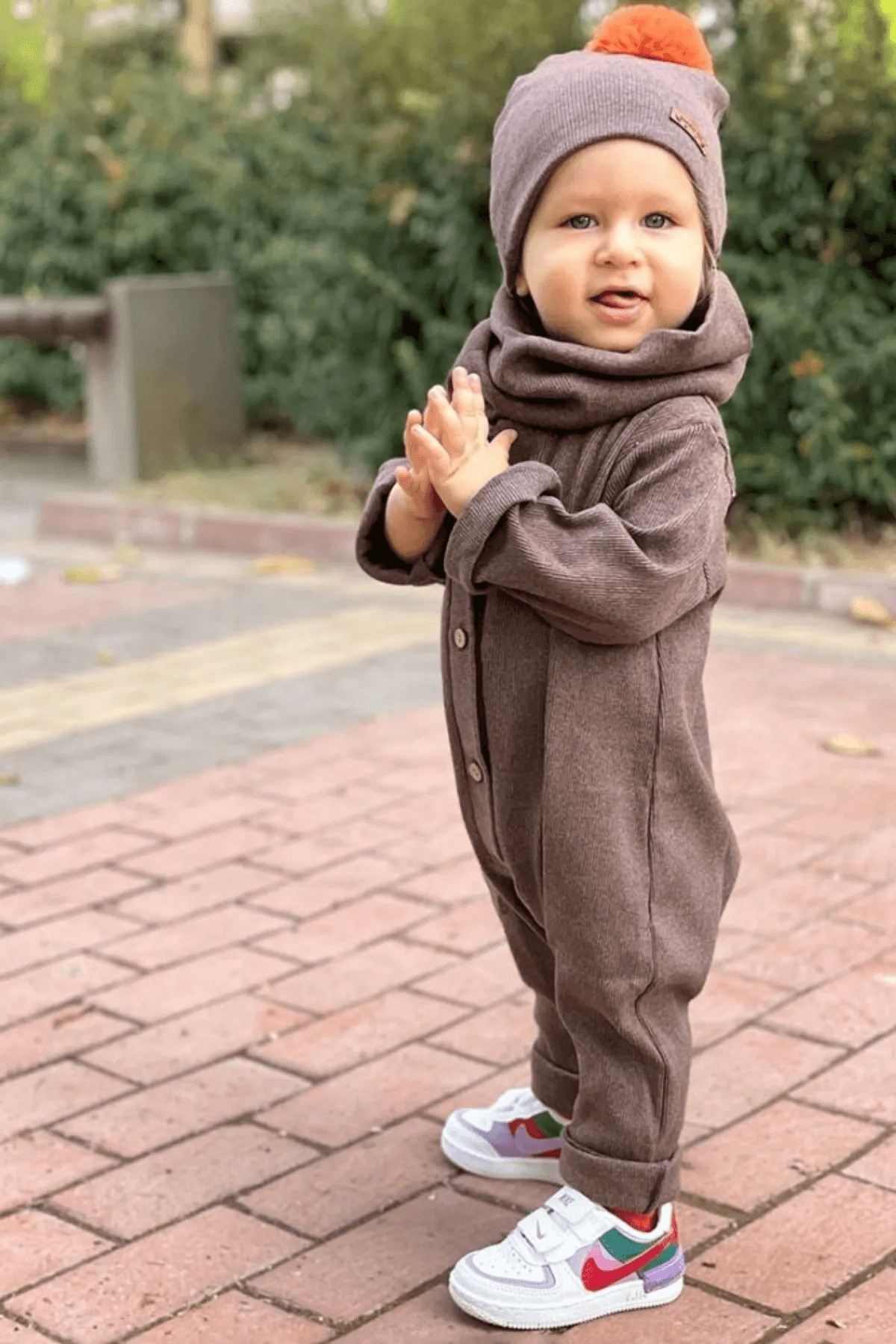 Geniş Kaşkorse Örme Kumaş 3'lü Set Tulum Bej