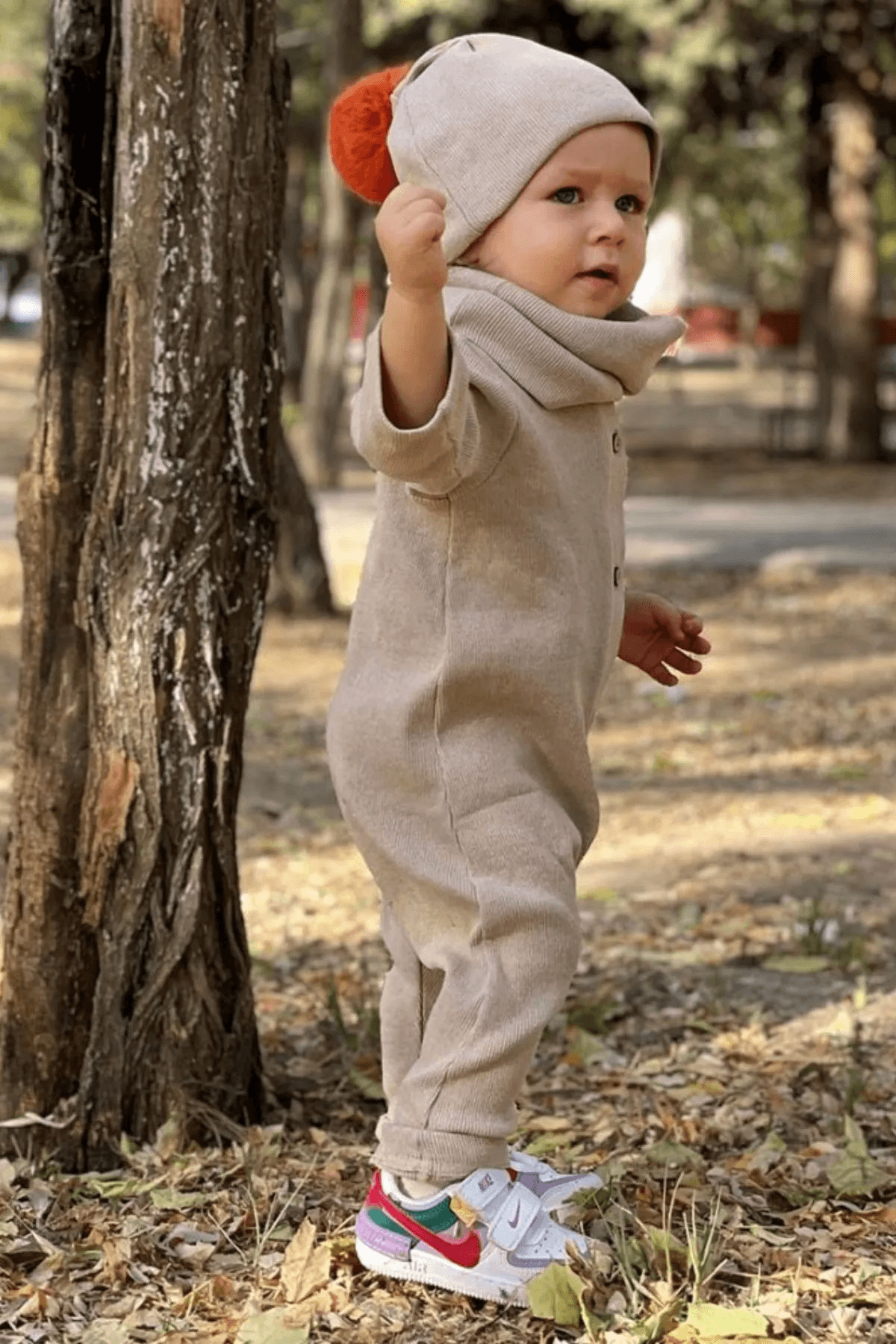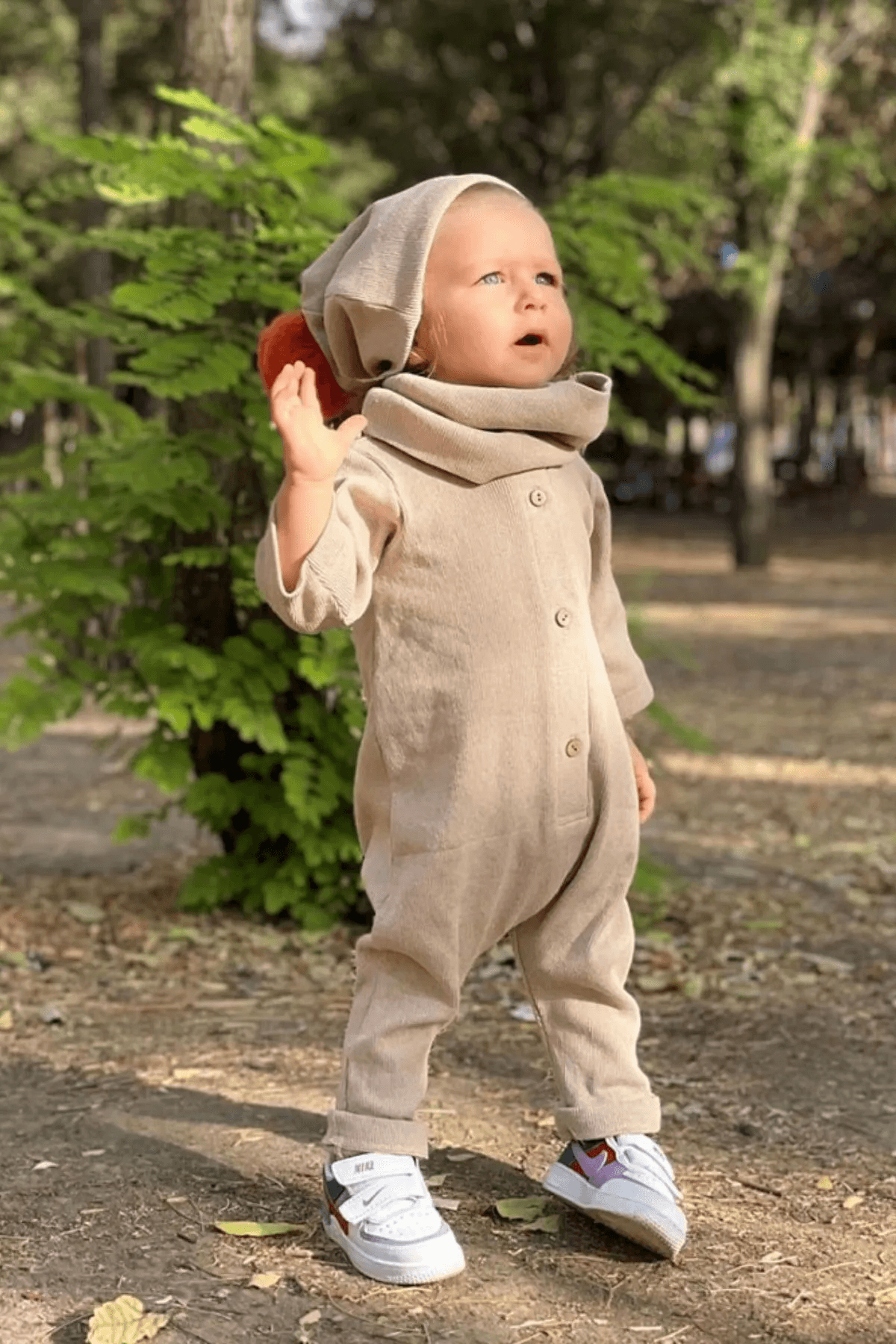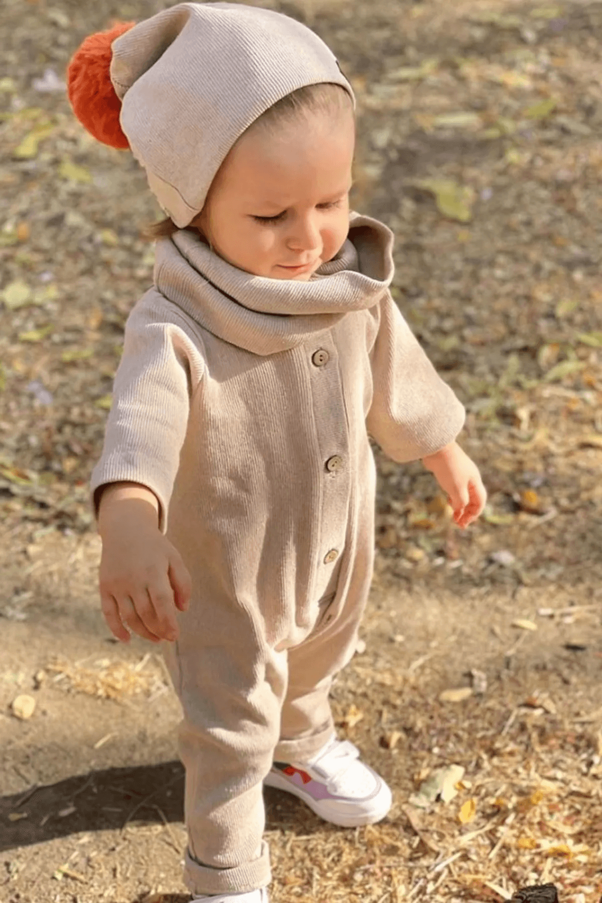 Geniş Kaşkorse Örme Kumaş 3'lü Set Tulum Kahverengi