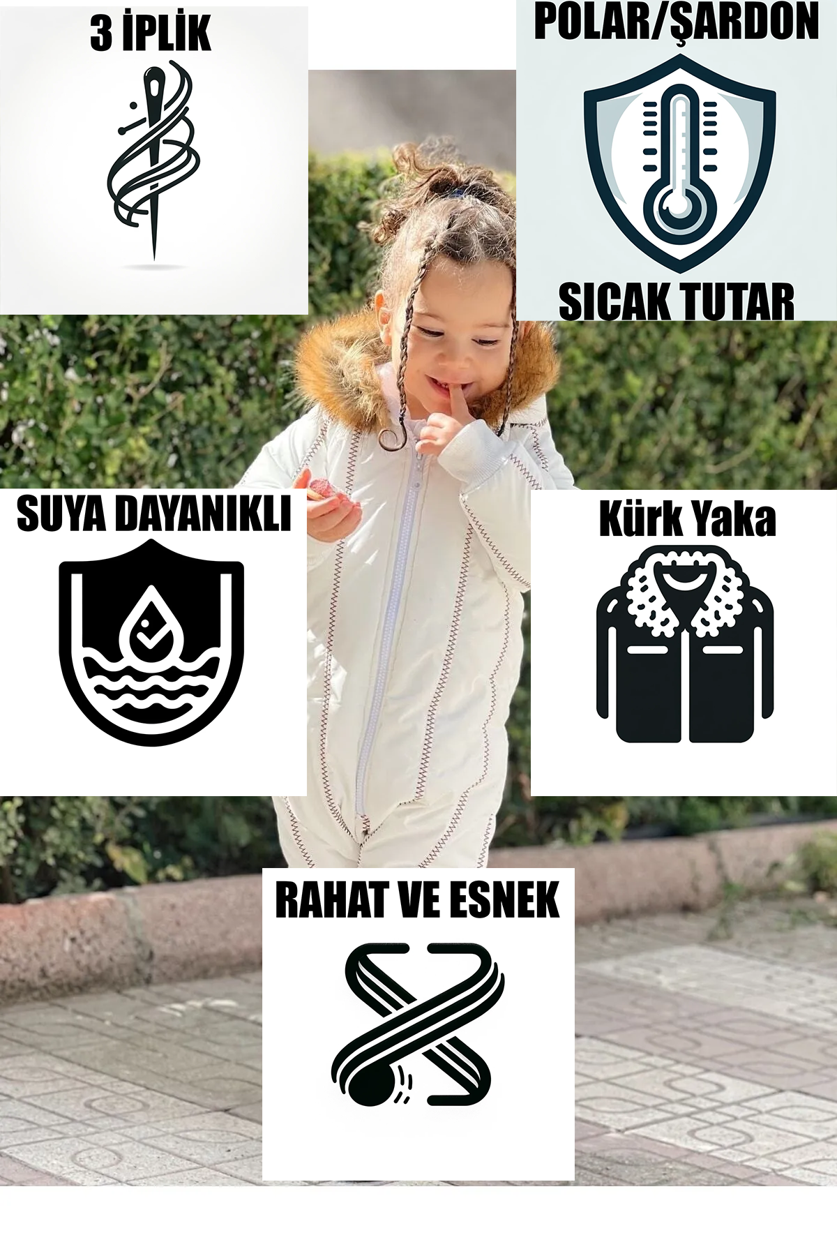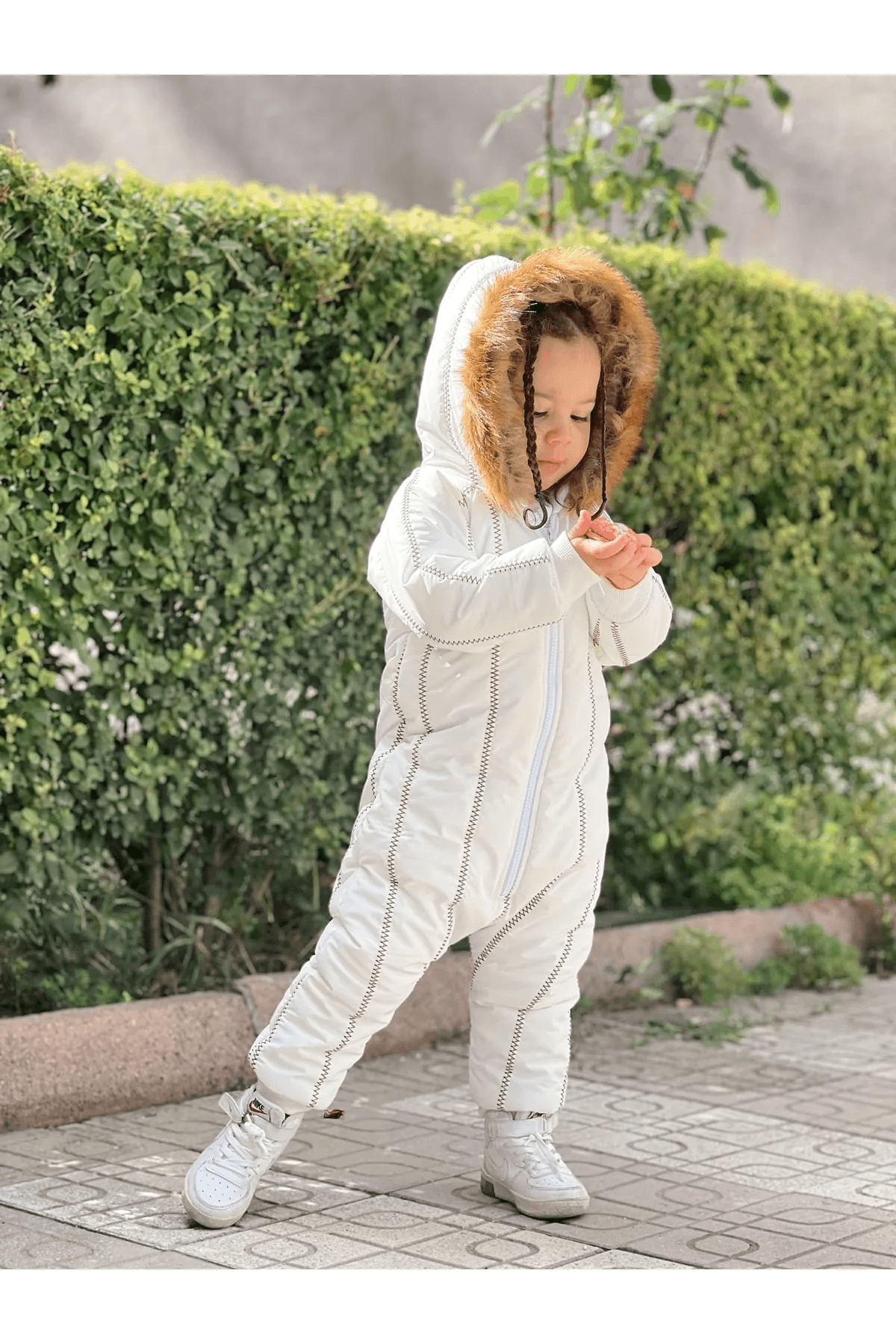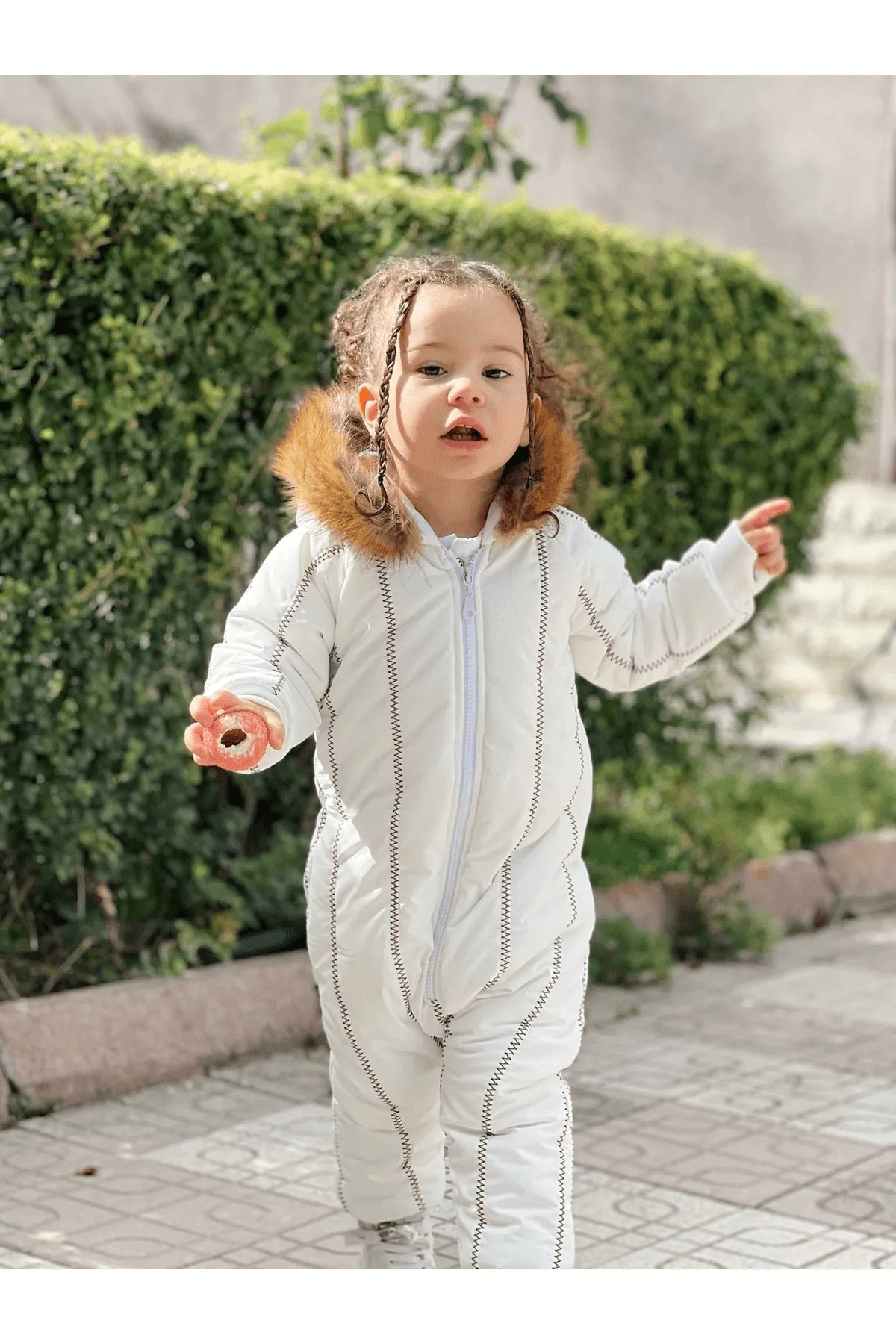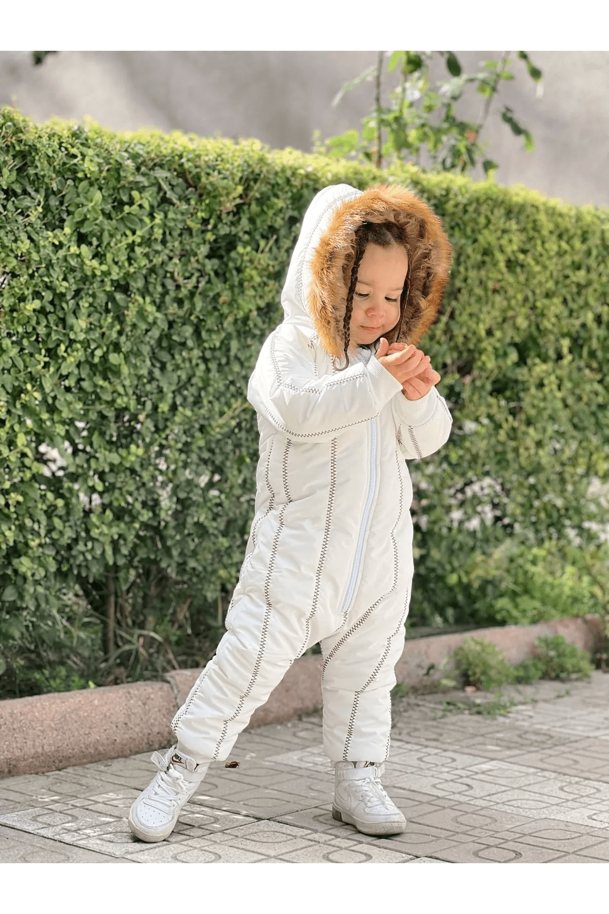 Kürk Yaka Beyaz Kar Tulumu