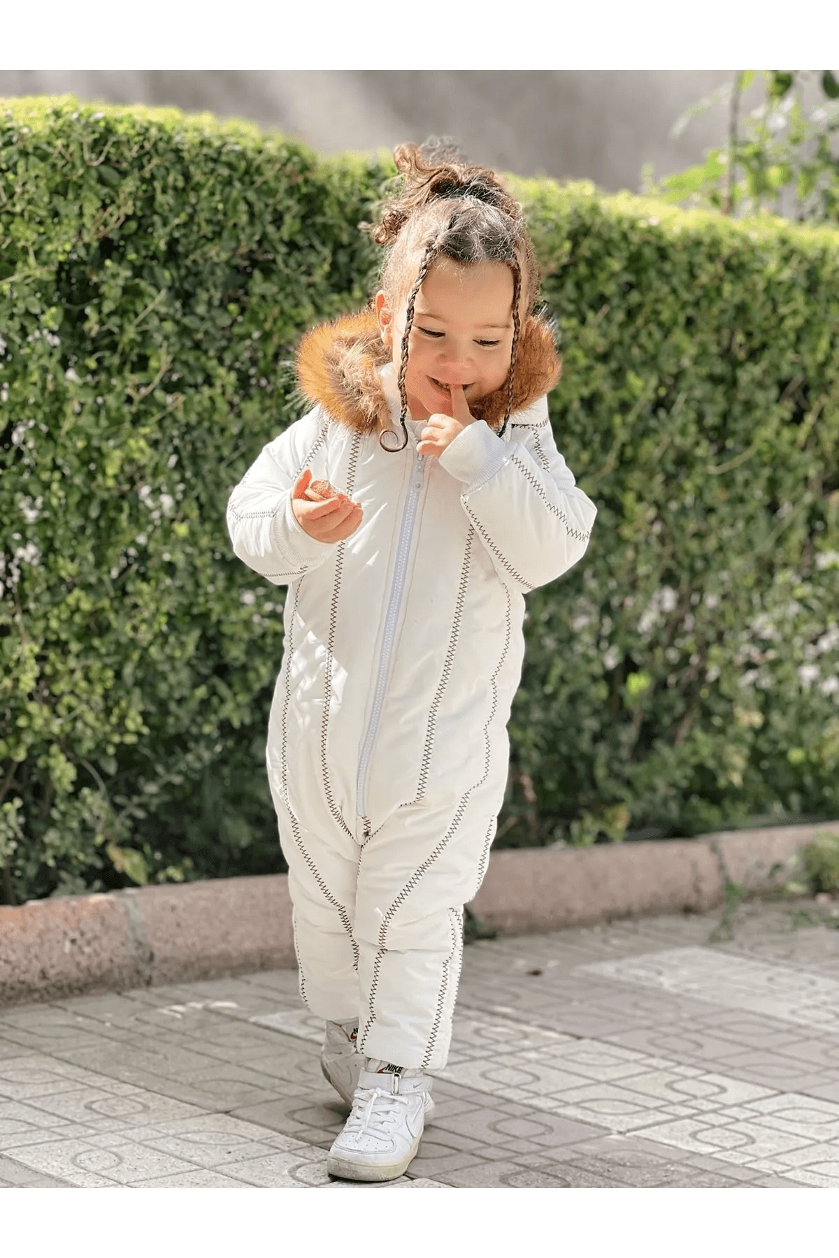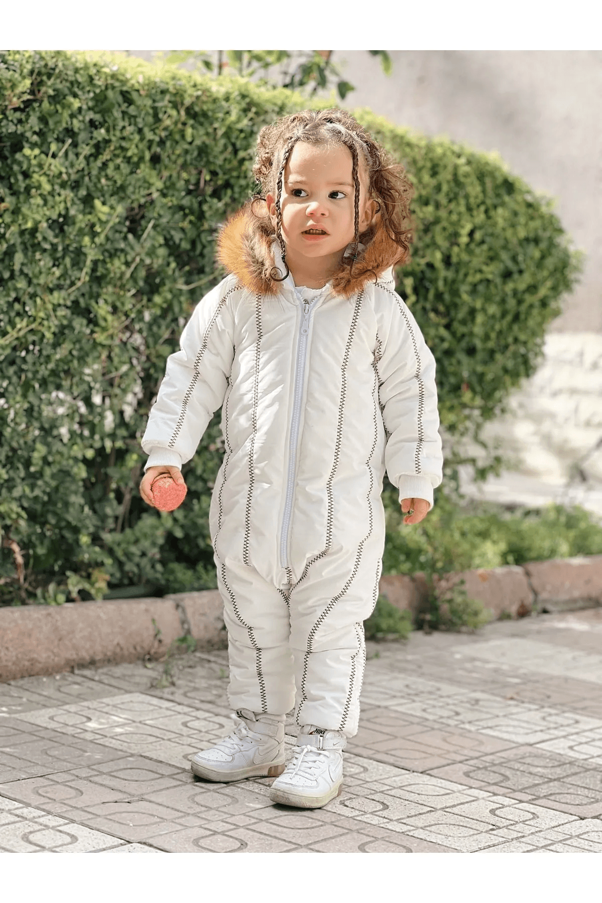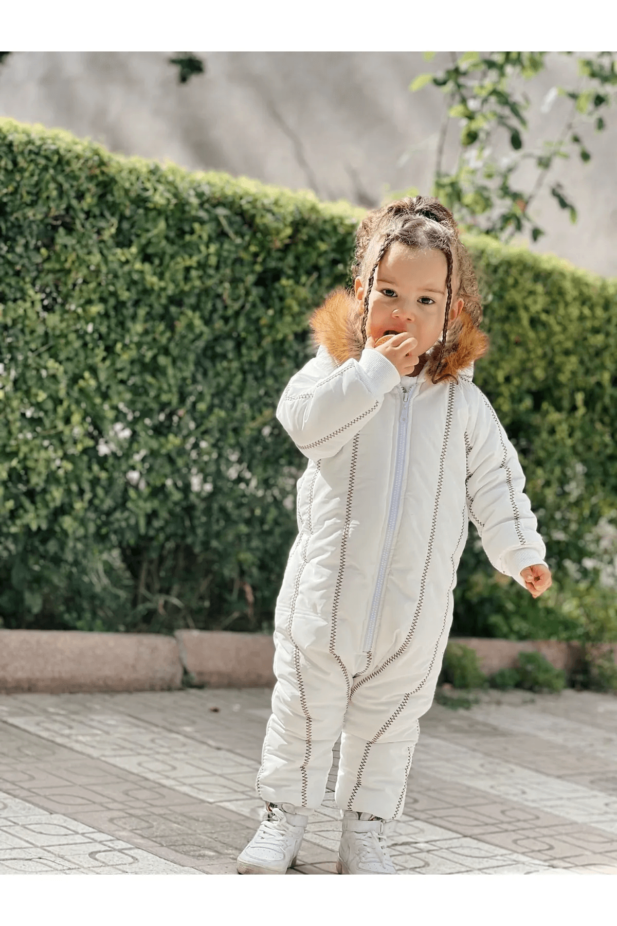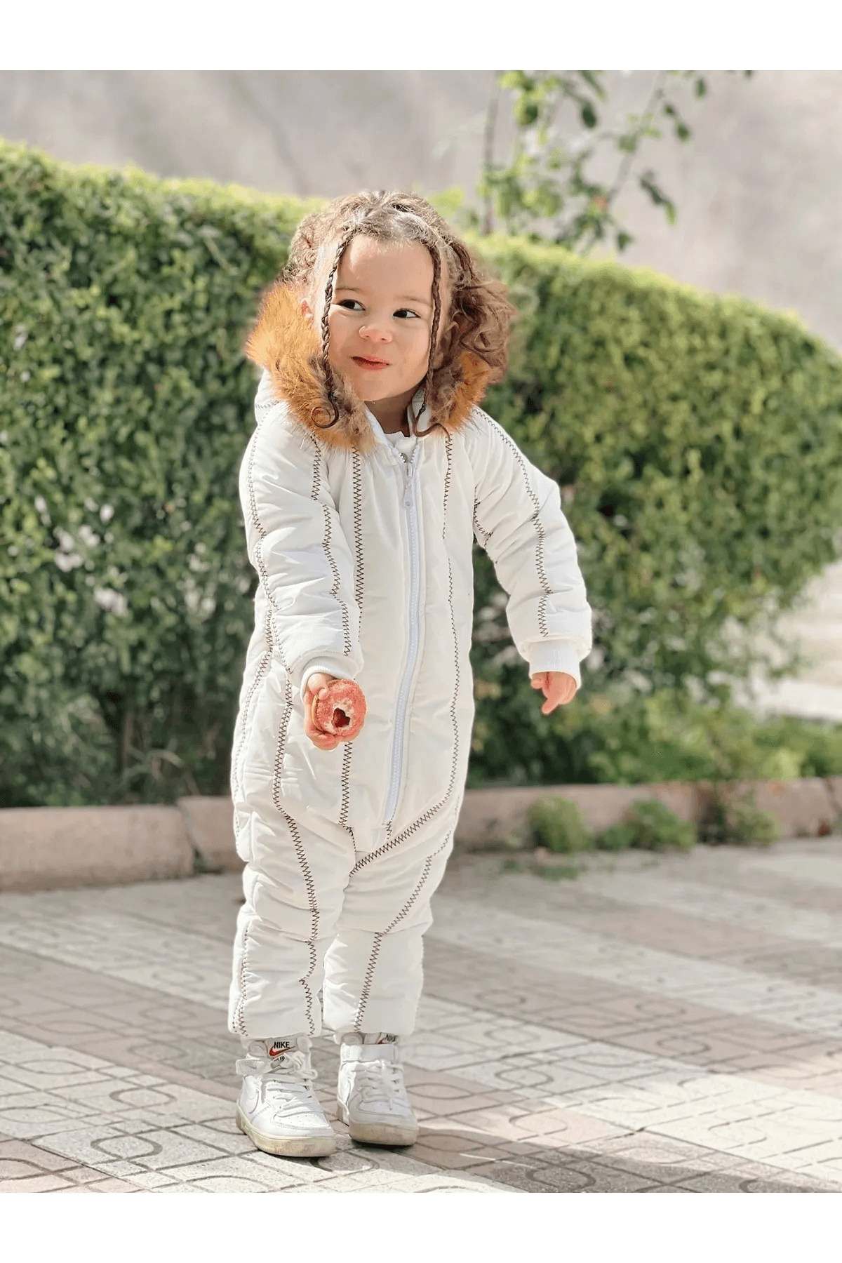 Kürk Yaka Beyaz Kar Tulumu
