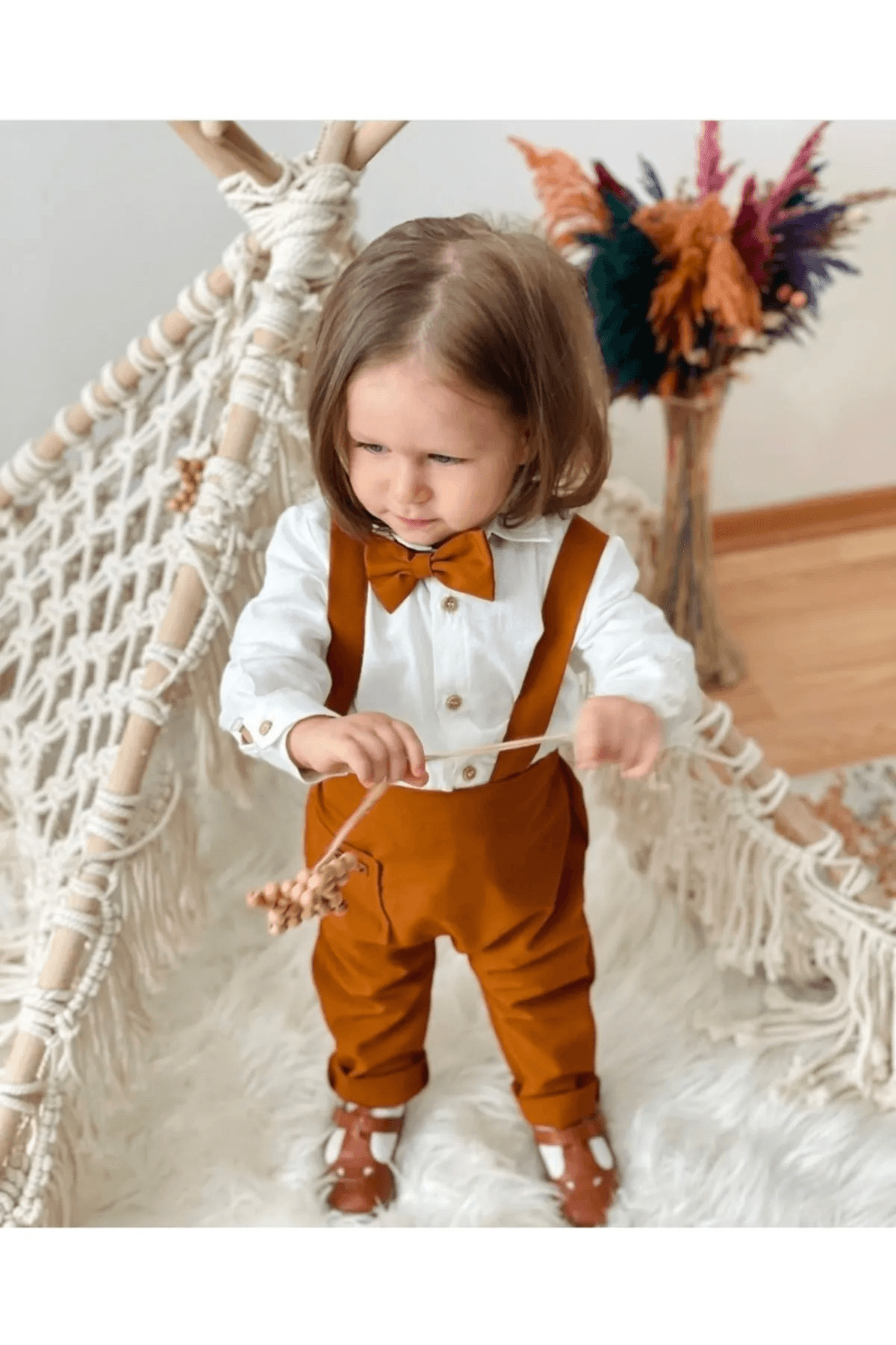 Erkek Çocuk Keten Giyim Seti Özellikleri: Cinsiyet: Erkek Çocuk Kumaş Tipi: Keten ve Pamuk Ürün İçeriği: Gömlek, Salopet Gömlek Kolu Modeli: Kısa Kollu Desen: Çizgili Kesim Kalıbı: Regular Fit Stil: Günlük Yaka Stili: Gömlek Yakası Mevsim: Mevsimlik kullanıma uygun